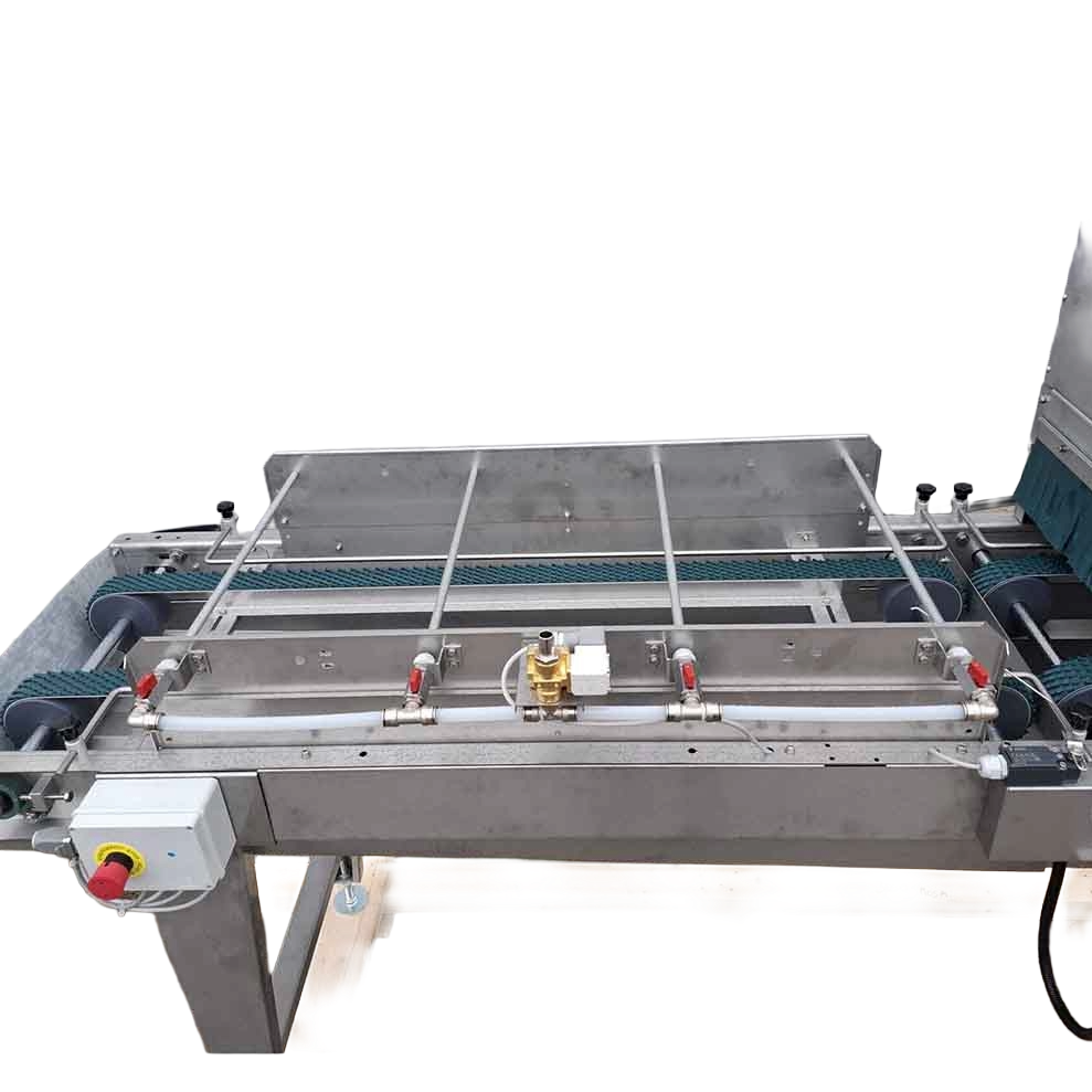 - The conveyor belt drive is adjustable and equipped with side guides.