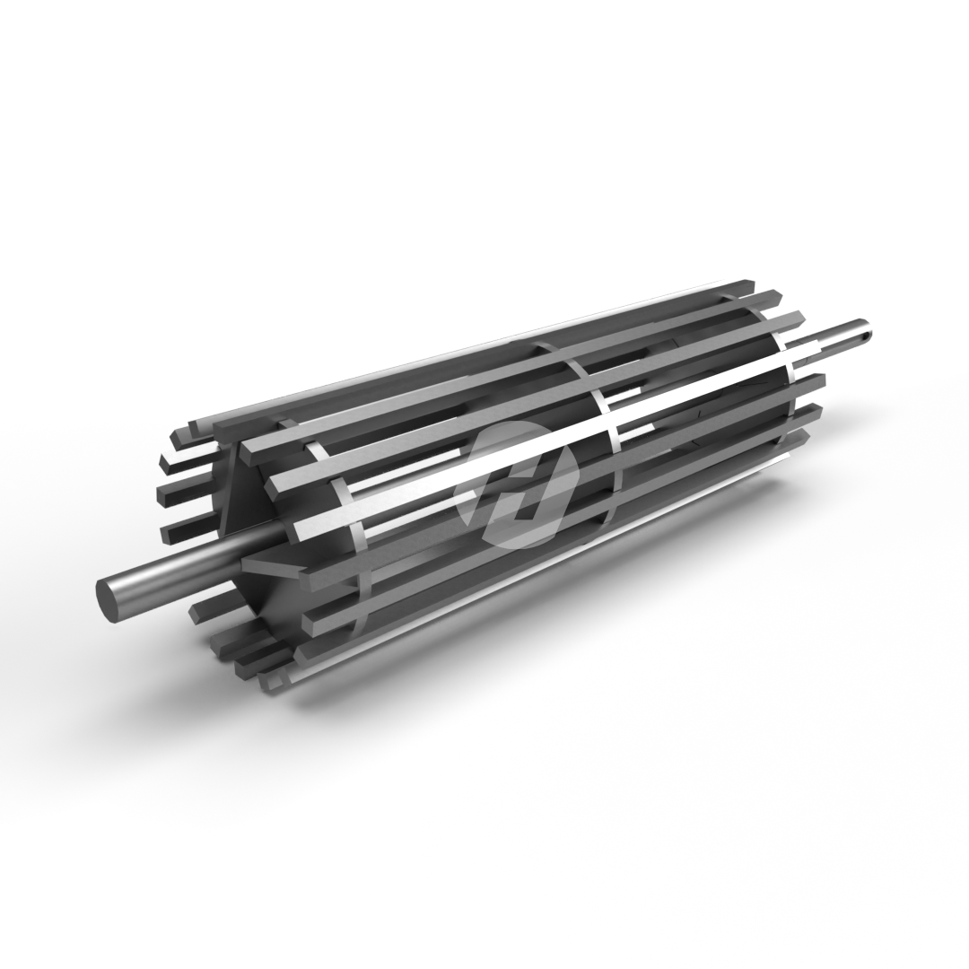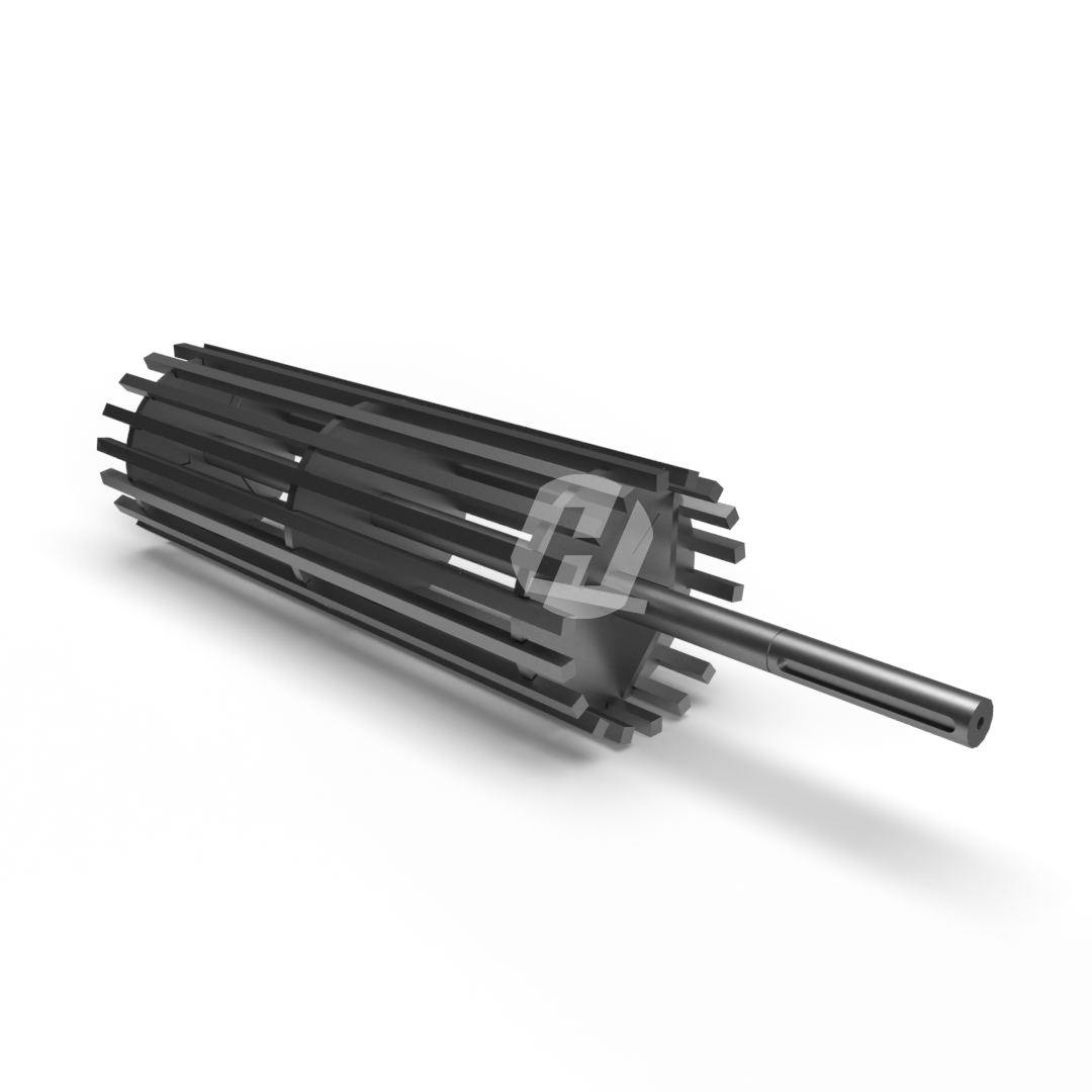 This drive shaft provides the circular movement of the chain and is placed in two large bearing blocks. This axle is often sold together with the complete chain and the trailing axle.